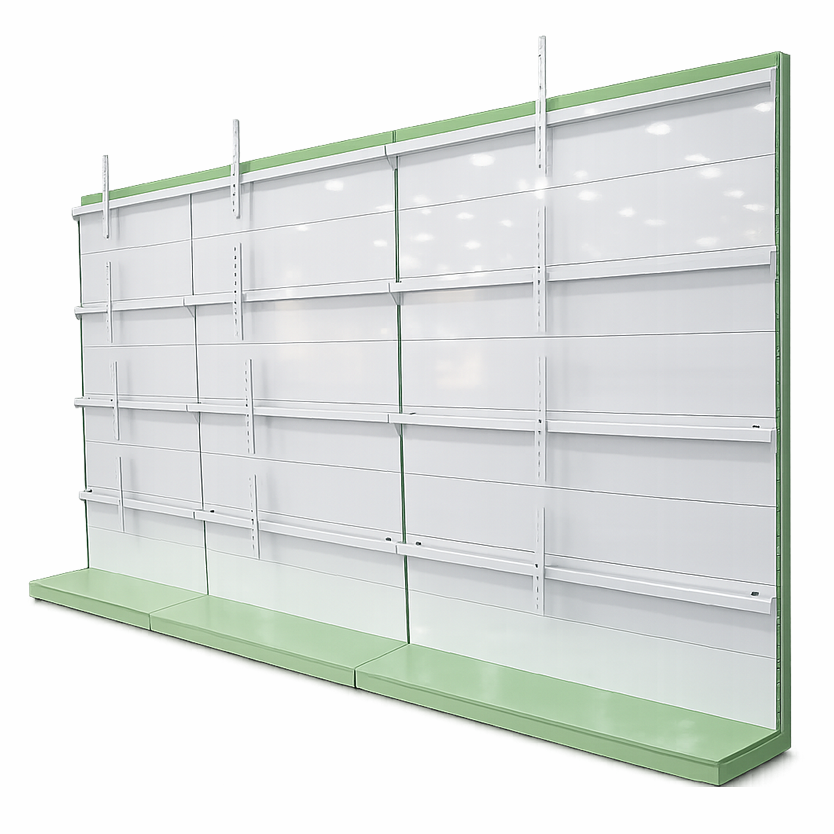 Most racks are supplied in a two-color combination. The main body including brackets, pillars, legs, and structural members is finished in the Main Colour , while the backsheet, shelves, and other selected parts are finished in the Combination Colour .